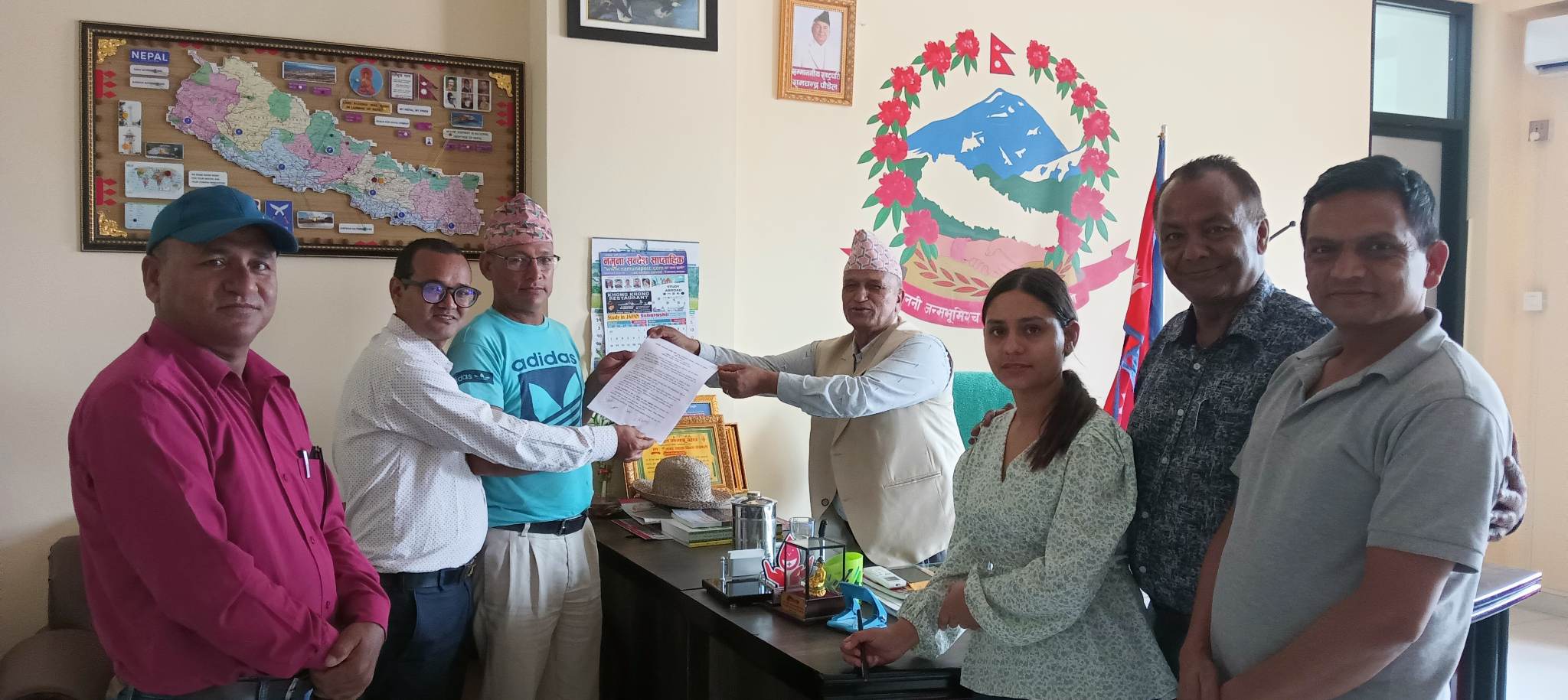 सामुदायिक वन उपभोक्ता महासंघ, नेपाल आदिवासी जनजाति महासंघ, ग्रीन फाउण्डेशन लगायतको टोली सोमबार नगरपालिकाका नगर प्रमुख विष्णु भुसाललाई ज्ञापन पत्र बुझाएका हुन् ।